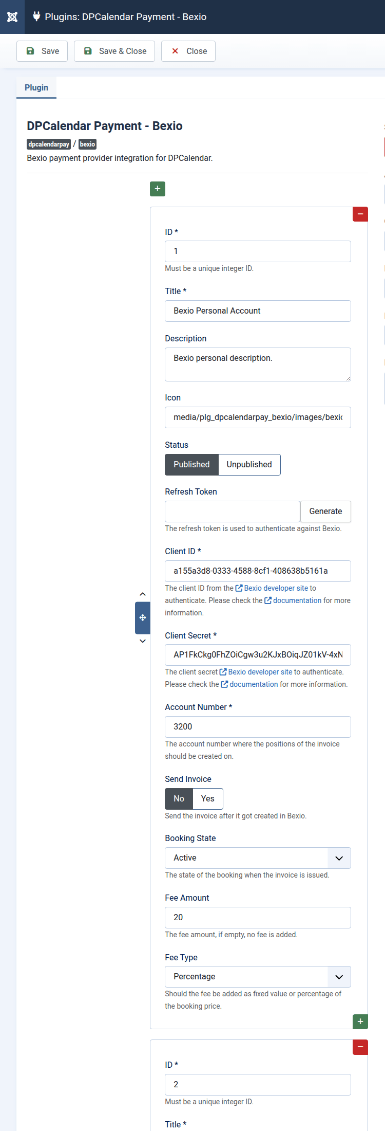 • Go back to the Joomla plugin form of the Bexio plugin.
