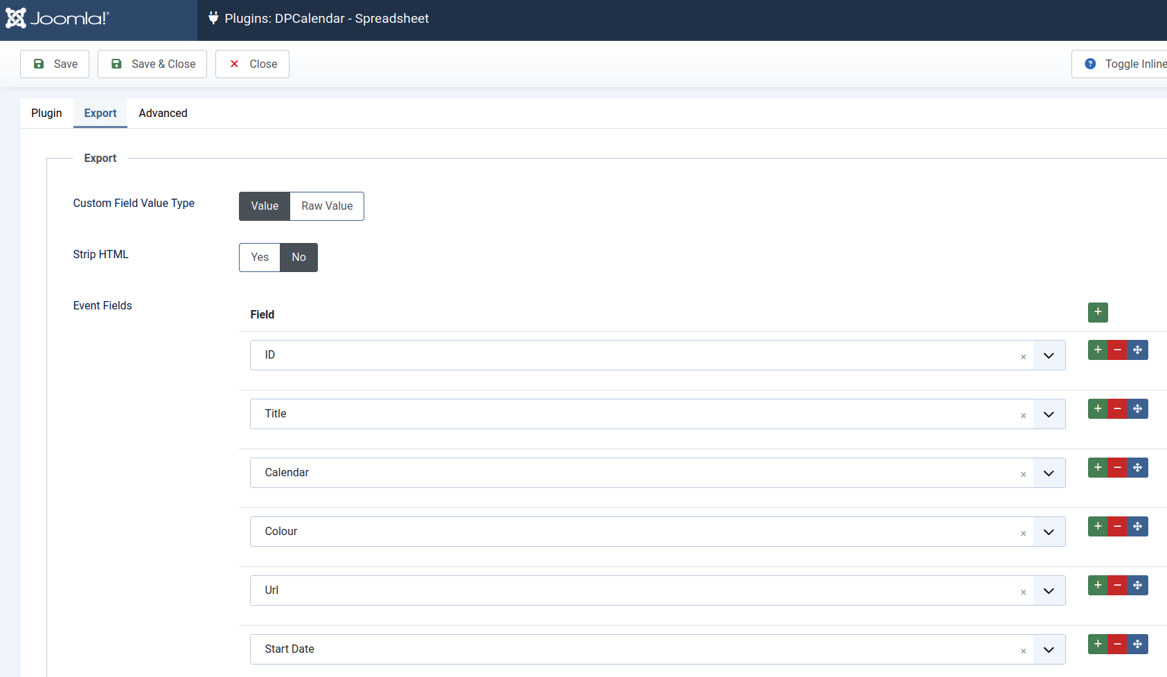 Every site has different needs regarding the displayed columns for CSV or Spreadsheet(xlsx) export. Till now it was a predefined list of exported fields which didn't fit the requirements of everybody. In this release it is possible to define the ordering and fields to display of events, bookings or tickets in the export with the widely accepted subform field.