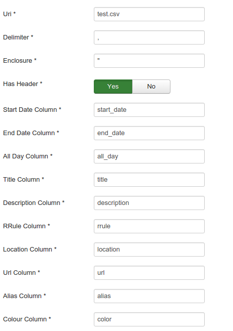 The CSV plugin got a bunch of new settings. Per CSV file the admin can define now which column represents the field of the event. Additionally the delimiter and the enclosure can be set.