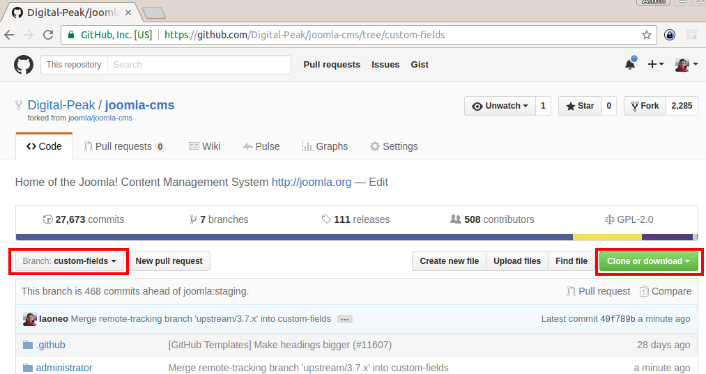 To test out the custom fields feature for Joomla, install the patch from PR #11833 or download Joomla from the custom fields branch from our fork https://github.com/Digital-Peak/joomla-cms/tree/custom-fields.