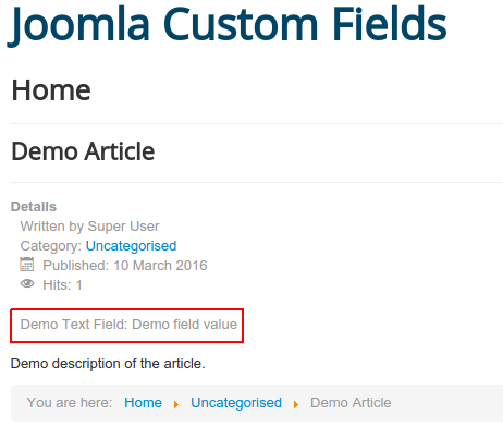 This short tutorial will show you how to create your first custom field for an article and display it on the front with a custom field.