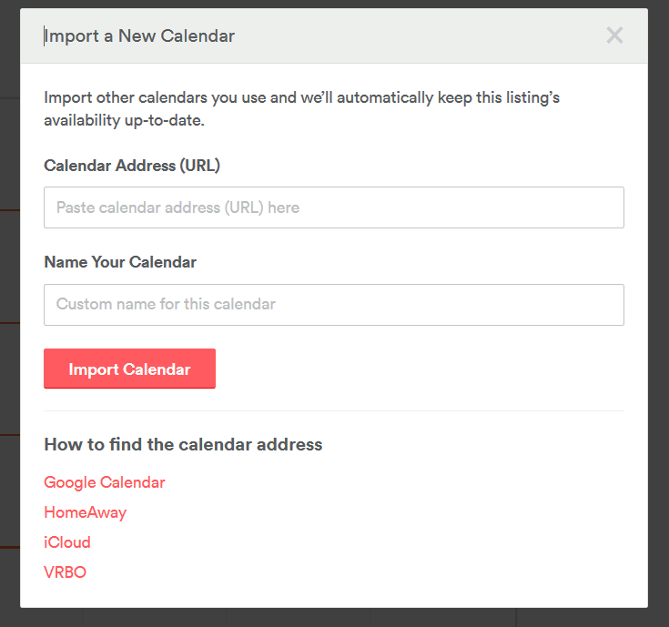 Now that we have our Uri, we can logon to our Airbnb admin area and copy the Uri into the calendar import setting.