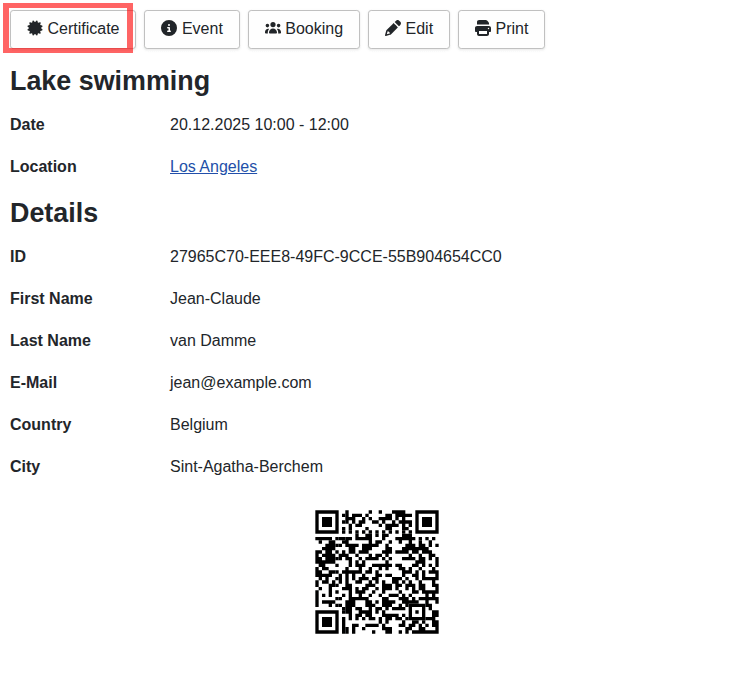 Certificates are offering the opportunity to confirm their attendance on an event. The "Checked in" state on a ticket defines, that a user has successfully attended an event.
