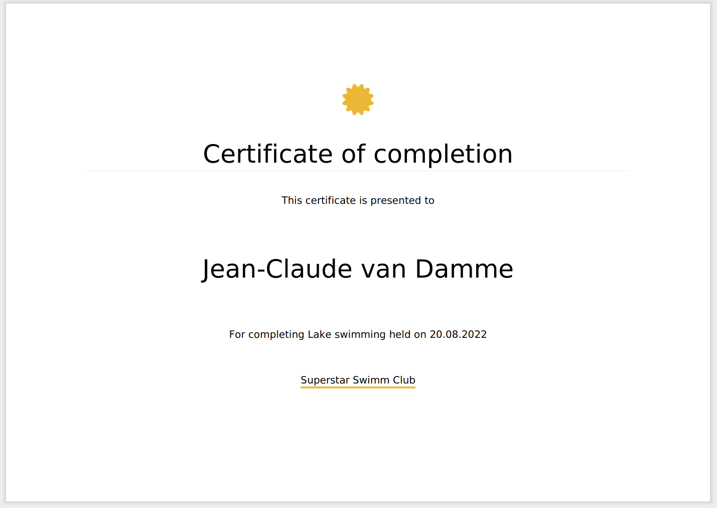 When a ticket has the state "Checked in", the certificate can be downloaded in the "My tickets" list or in the ticket details view. The author of the event or admin can download the certificate from the ticket list of either an event or booking or the ticket details view itself. There is also a scheduler task to send out the certificate without any admin interaction for past events. More information can be found in the Task plugin article.