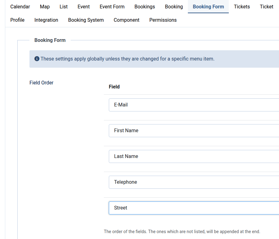 It is possible to customize the detail and form views for bookings and tickets to a certain degree. In the DPCalendar options the site admin can set up the order of the fields and which ones should be required, optional or hidden. This includes also the custom fields for the bookings and tickets.