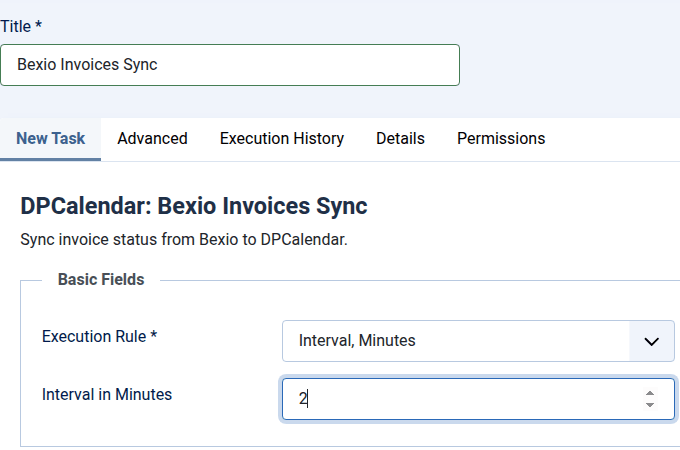When the DPCalendar Bexio plugin is enabled, the Task plugin can check if there are some paid invoices in Bexio and does activate the booking automatically. Together with the automatic bank sync in Bexio itself, it is possible to automate the whole process from issuing invoices in Bexio till automatic activation of bookings in DPCalendar.