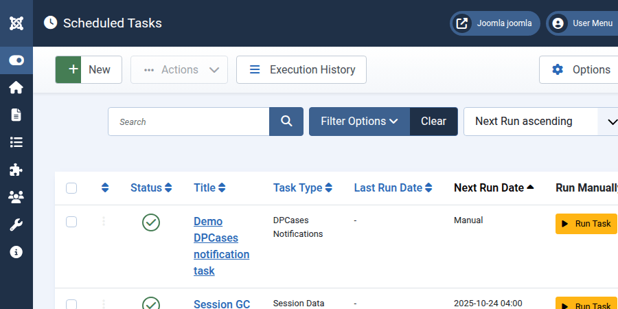 The task plugin offers the possibility to run the notification and closing action as a scheduled task within Joomla core.