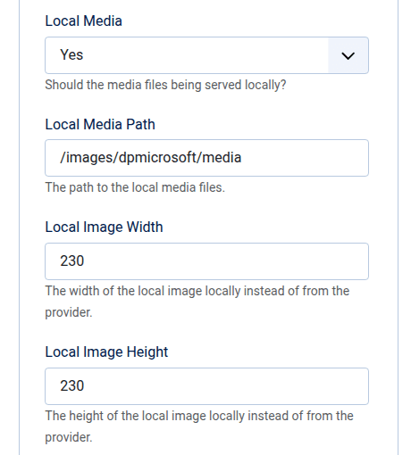 Per imported account the site administrator can define caching so images will be loaded much faster in the media manager. DPMedia uses the core Joomla cache, so it can be revoked at any time in the core Maintenance Manager. Additionally the admin can define a cache time so images will downloaded after a certain time automatically again from Microsoft.