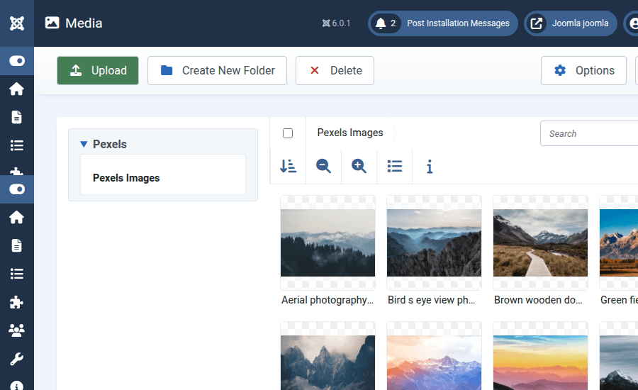 The Pexels plugin integrates media data from the Pexels web site into the Joomla core media manager. It allows the admin to select images in articles and any other extension which uses the core media manager. The Pexels integration is readonly. It's possible to add unlimited different Pexels servers in the plugin.